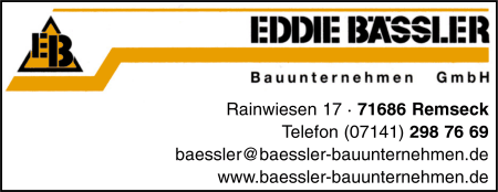 | Bietigheim-Bissingen | | SCHEUFFELE Bauunternehmung GmbH · Birkenweg 1 · 74321 Bietigheim-Bissingen · Tel. (07142) 3 08 49 E-Mail: info@scheuffele-bau.de |